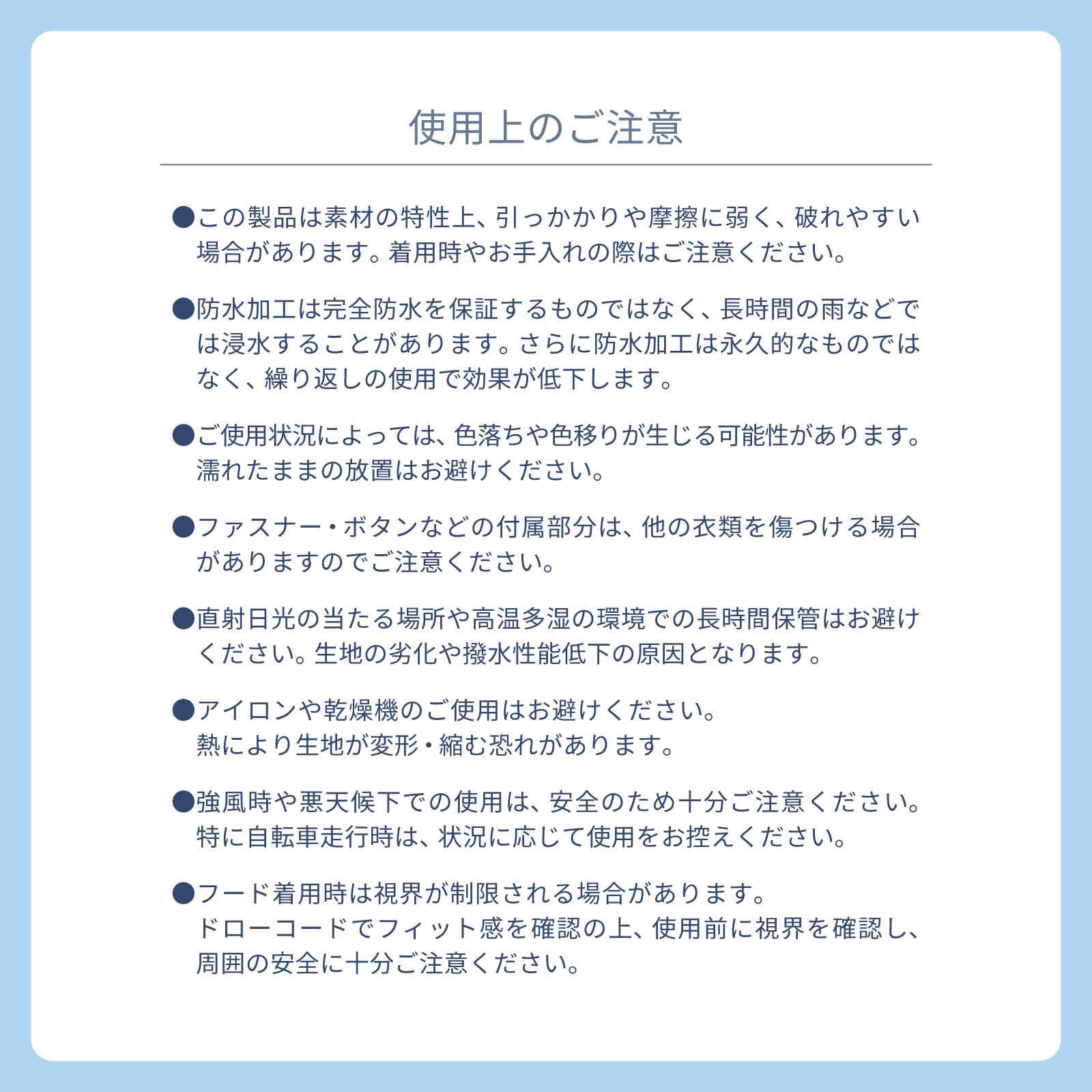 ボタンなし、広げて羽織ってジップを上げるだけだから、忙しい朝や急な雨でもすぐ着用完了!